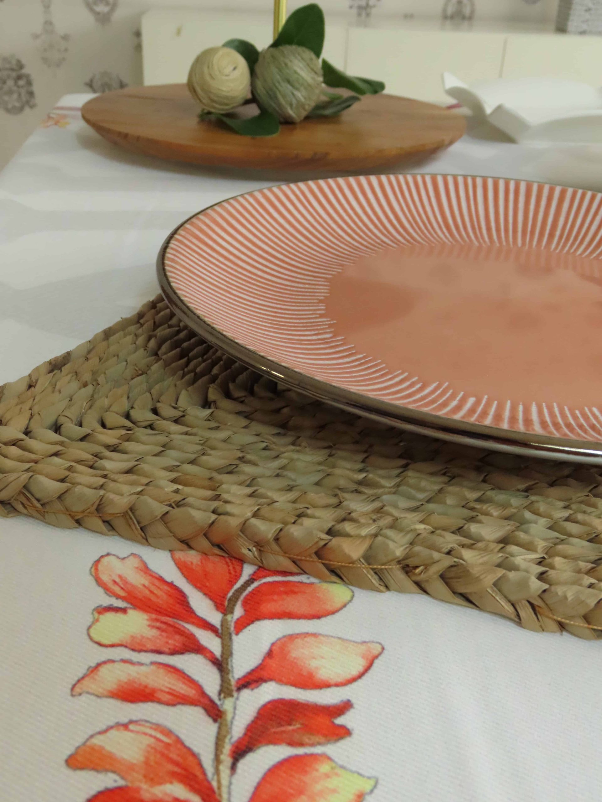 Haciendo énfasis en el ENCANTO de los tonos más suaves del estampado, esta propuesta maneja una paleta de colores que va desde los blancos y beige hasta los rosas y marrones, resaltando la elegancia y la DELICADEZA de las flores. De mayor aspecto romántico y sofisticado, esta mesa será el marco ideal para tu celebración.